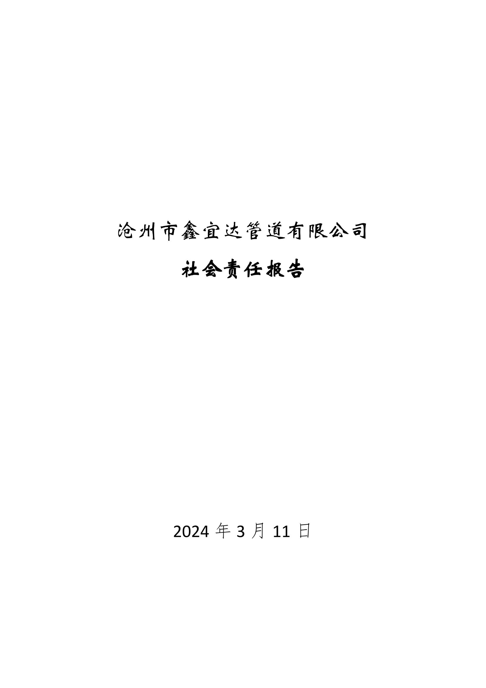 滄州市鑫宜達管道有限公司社會責任報告